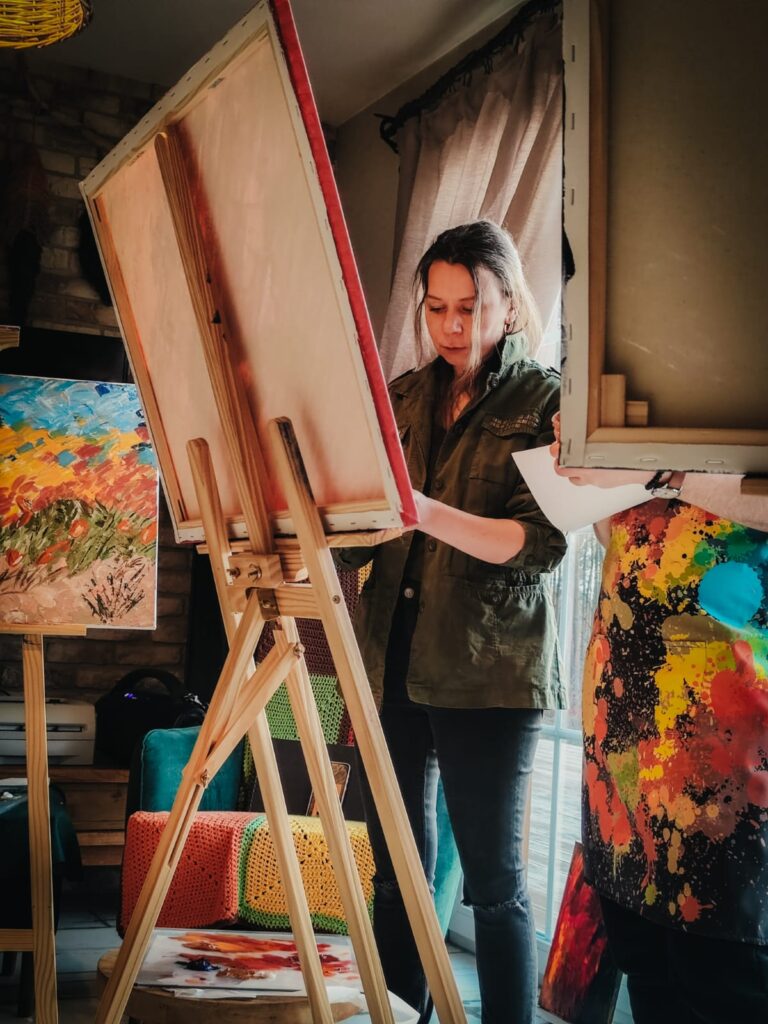 I sztalugi i farby i kobiety i piękne obrazy sercem malowane 🙂